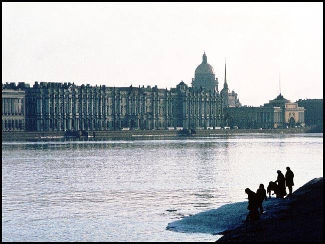 Russian winter along the Neva, Leningrad (St Petersburg) USSR - 1970