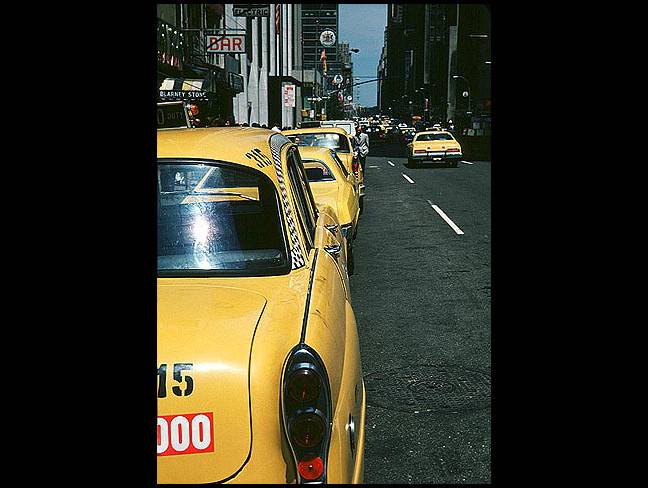 Yellow cabs along Sixth Avenue, New York - 1980