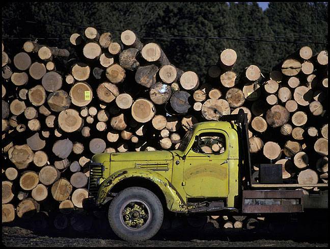 Logging truck outside Lusk, Wyoming (USA) 1980