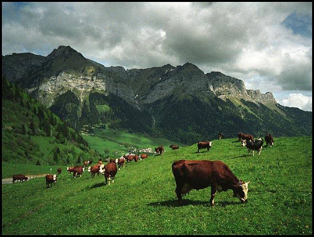 Abondance cows grazing outside Montmin (France) - 1991